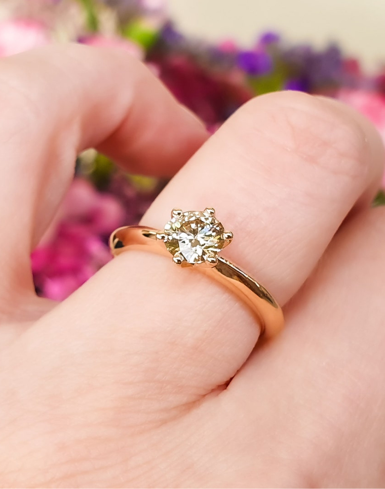 Verlobungsring, Diamantring aus 750er Rosègold mit Champagnerfarbenen Brillant (0,65 Carat)