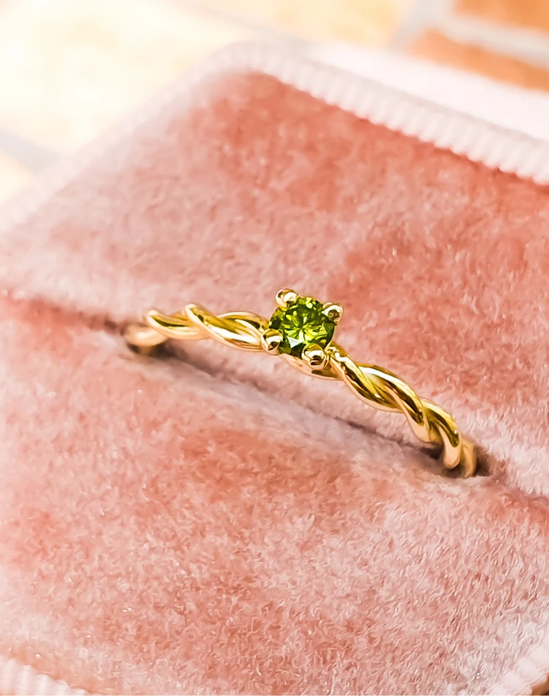 Verlobungsring, Diamantring aus 585er Gold mit funkelndem, grünem Brillant (0,1 Carat)