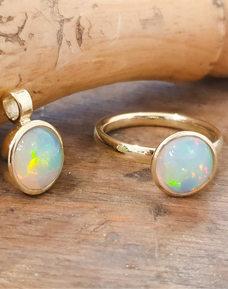 Opalset aus 750er Gold mit selbst mitgebrachten Opalen des Kunden