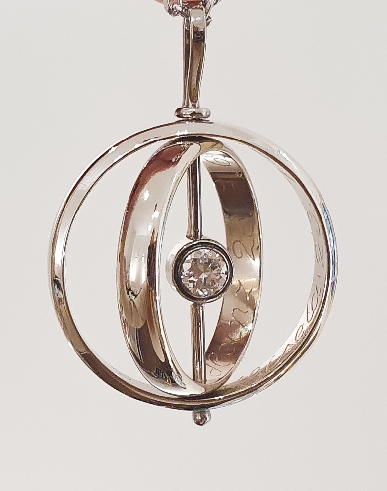 Die Eheringe der Eltern aus 585er Weißgold wurden zu einem einzigartigen Anhänger umgearbeitet und so zu einem ganz besonderen Erinnerungsstück.