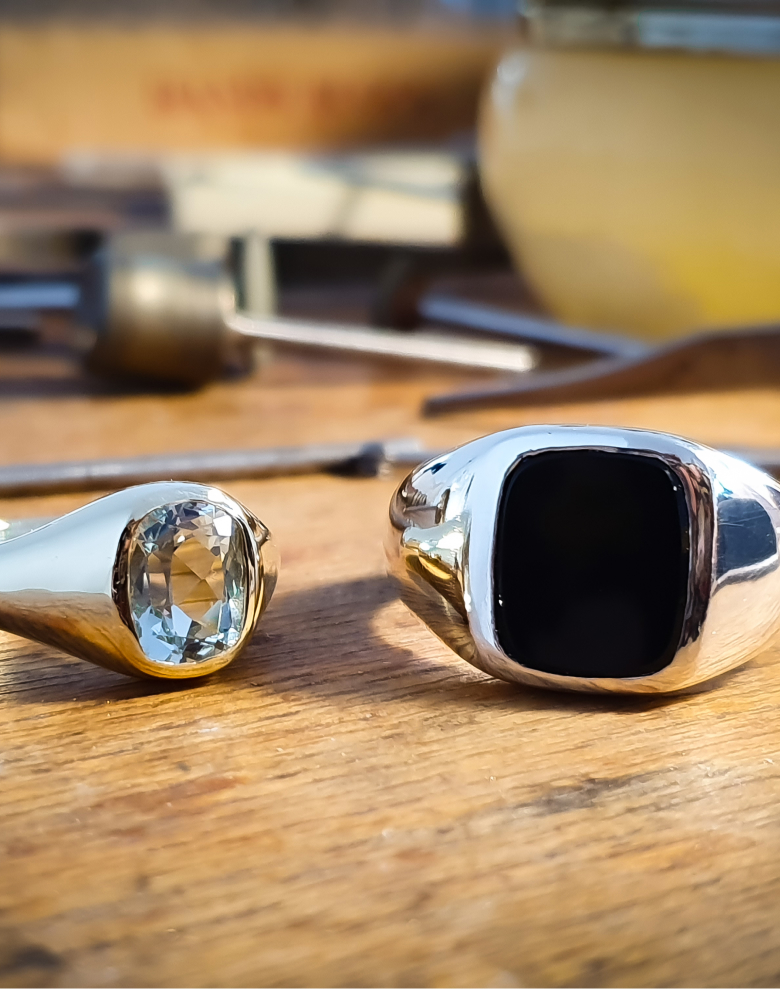 Ganz gleich ob Trauringe, Partnerringe, Verlobungs- oder Freundschaftsringe, zu jeder Anfertigung gehört eine ausführliche Beratung zu dem idealen Material, Form, Oberfläche, Gravur und Edelstein.